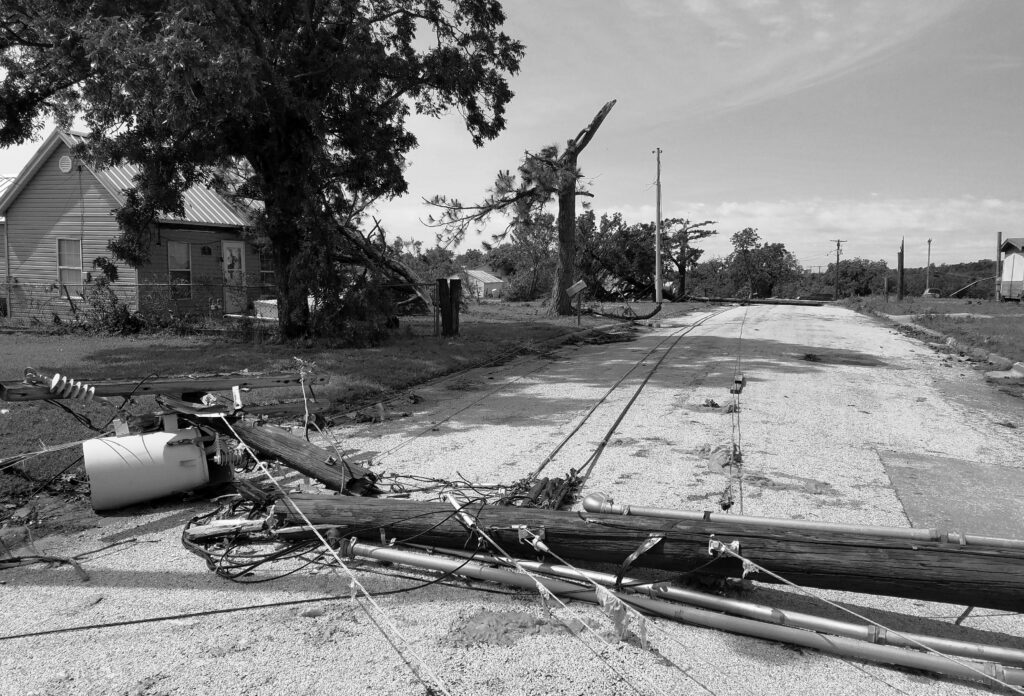 According to a local news source, over 450 structures were either seriously damaged or destroyed. For a town of slightly more than 5,000 people, already suffering from the COVID-19 recession like the rest of the US, and with the crash of oil prices, whose business sustains many in the community, the recovery will be an uphill battle. This little rural community will be joined by countless more in the very near future, and it will not make headlines in any mainstream news cycle. Many poor people became homeless that night. Many small business owners lost their livelihood. Countless majestic old oaks, sycamores and hackberry trees were snapped like matches or uprooted. Last, but not least, baby birds in the trees were killed by the thousands. The infrastructure suffered a great deal too, with many wooden electrical posts broken like twigs or laid flat on the ground.