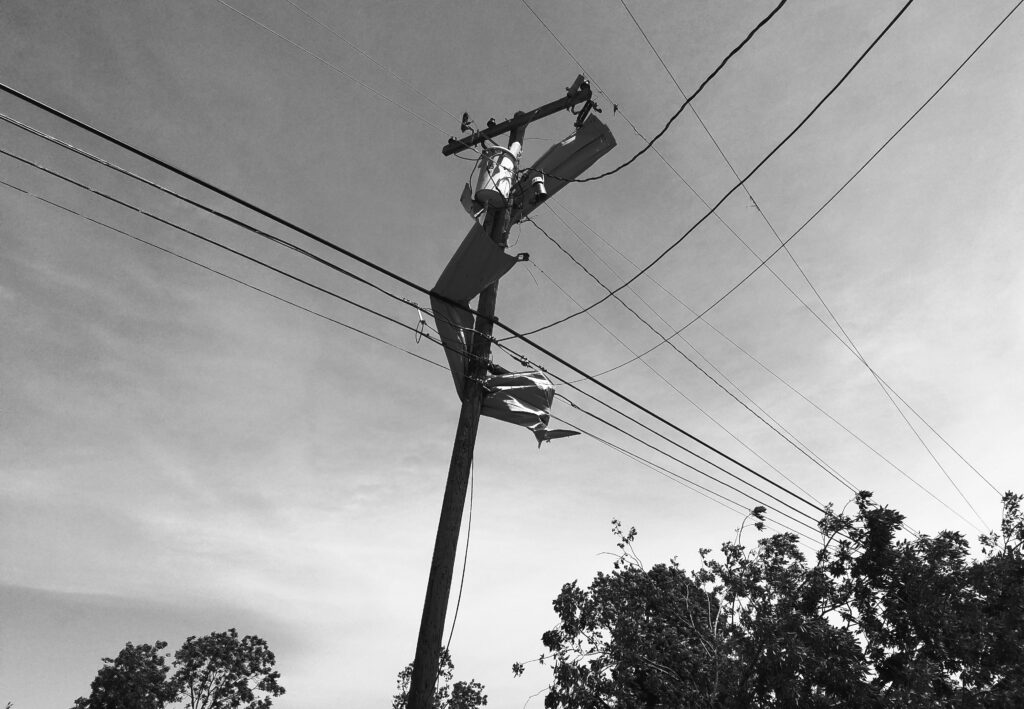 The day after the tornado hit, the private power company that has the contract from the city to maintain and fix all the electrical grid, power station, electrical posts, transformers and lines showed up, assessed the damage and immediately shut down part of the grid. Fair enough. The repairs had to be done. I asked the crew’s foreman what was a projected time estimate to restore service to the town. He didn’t want to answer and abruptly told me to contact the press representative of the corporation that employs him. The following week we had, in the town, several daily power outages as well as Internet disruption. A few years before the town had made a huge technological jump to fiber optics, all of it run underground. Of course, the Internet/communication company that won the bid to wire the town is different from the power company.