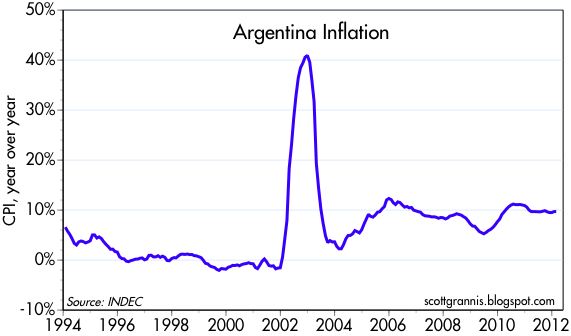 This happened in Argentina in 2002 and in Iceland in 2008. It goes up fast, then comes back down equally fast, as the two graphs below indicate.