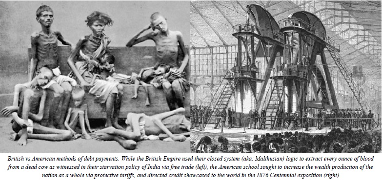 Encouraging creative thought and cooperation among diverse nations, linguistic, religious and ethnic groups tends to result in new uncontrolled systems of potential as humanity increases its capacity to sustain itself while imperial systems lose their ability to parasitically drain their host. In Lincoln’s great 1859 speech, the martyred leader stood up against this Malthusian paradigm endemic of the British Empire when he said: “All creation is a mine, and every man, a miner. The whole earth, and all within it, upon it, and round about it, including himself, in his physical, moral, and intellectual nature, and his susceptibilities, are the infinitely various “leads” from which, man, from the first, was to dig out his destiny… Man is not the only animal who labors; but he is the only one who improves his workmanship. This improvement, he effects by Discoveries, and Inventions.”
