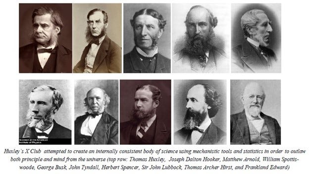 On the scientific battle front, Thomas Huxley founded an elite think tank dubbed ‘The X Club’ in 1865 which was driven by the mandate of gaining control over the narrative of “what is science and how does it work”.