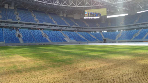 - Zenit FC was forced to change the lawn two times during the last six months. For example, in April the grass rotted due to improper use of the insulation system. It was switched on at night for a month, but should be used only 4 hours per day.