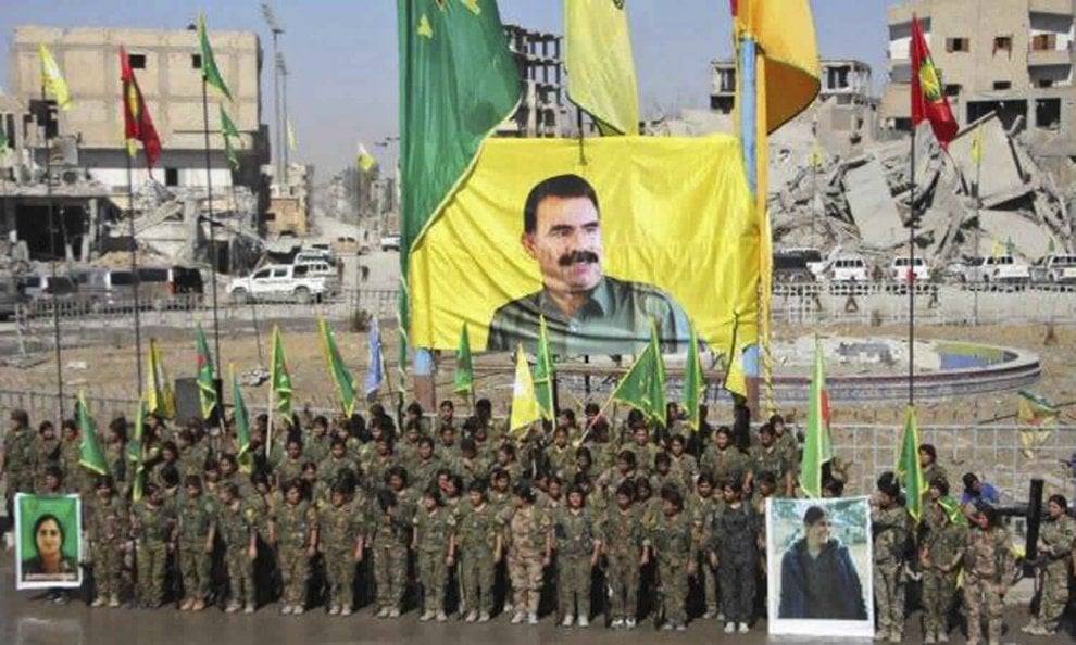 The link between the US proxy group, SDF, a Kurdish led militia which Syria names as a terrorist organisation, was made clear when SDF militants were photographed in Raqqa, hoisting a giant photo of Abdullah Ocalan, the terrorist PKK leader who is currently in prison.